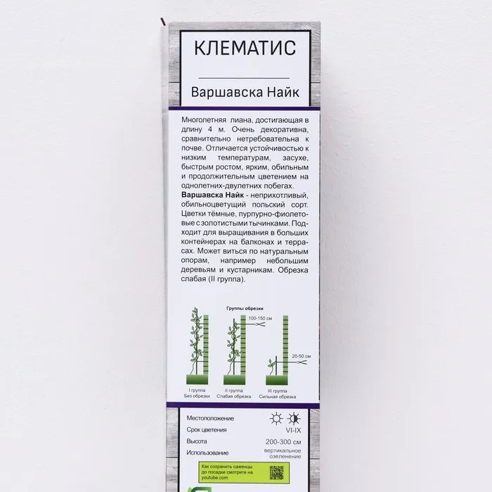 Клематис крупноцветковый «Варшавска Найк» лиана, 1 шт., туба — Характеристики