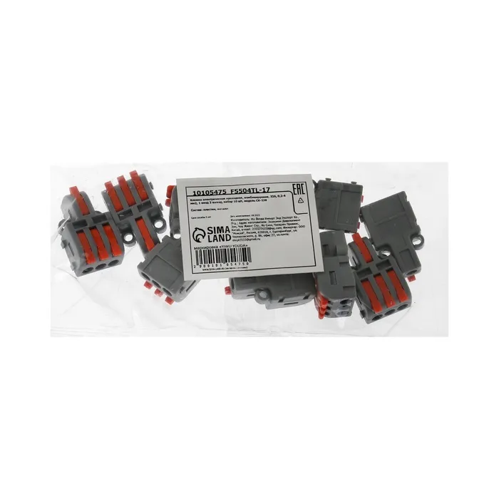 Клемма электрическая проходная, комбинируемая, 32А, 0,2-4 мм2, 1 ввод 3 вывод, набор 10 шт