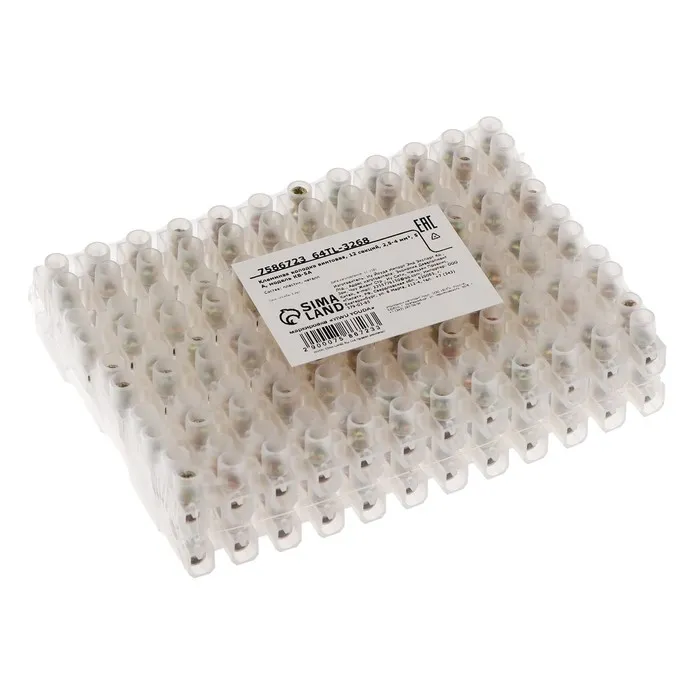 Винтовая клеммная колодка содержит 12 секций и подойдёт для соединения проводов с диаметром сечения 2,5-4 мм². Изделие защищает провода от повреждений и исключает возможность замыкания.