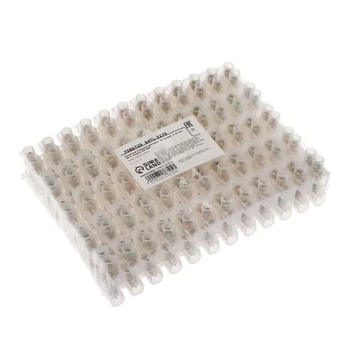 Винтовая клеммная колодка содержит 12 секций и подойдёт для соединения проводов с диаметром сечения 4-10 мм². Изделие защищает провода от повреждений и исключает возможность замыкания.