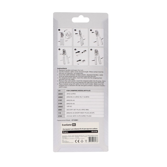 Клещи для обжима и разделки кабелей ExeGate EX-210C, для для RJ45 — Характеристики