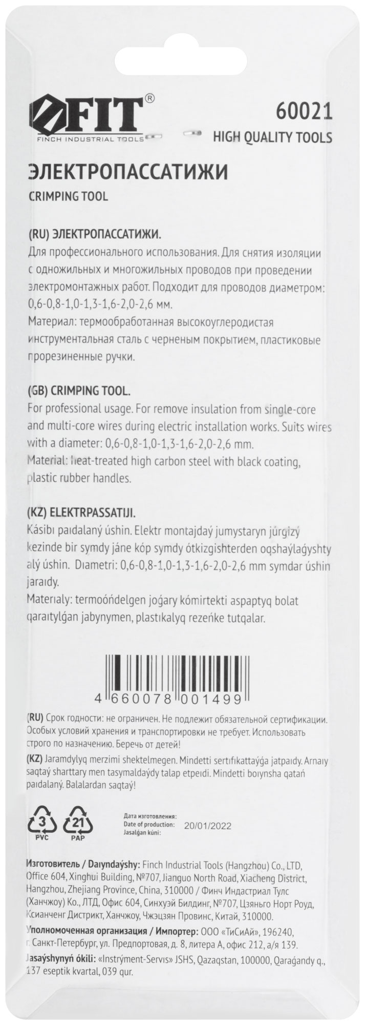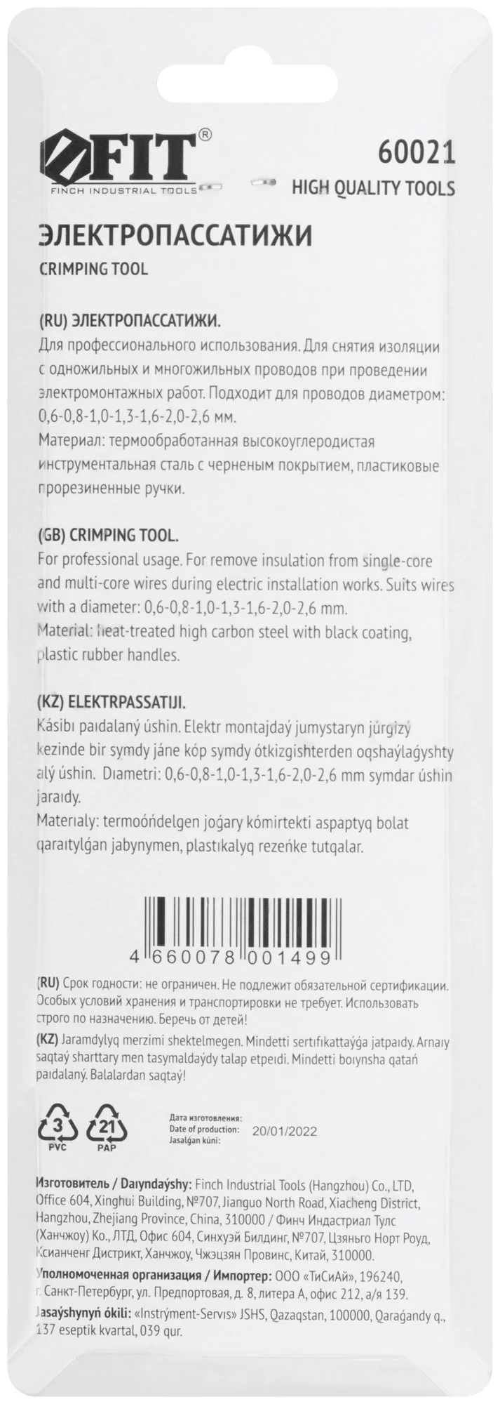 Клещи для снятия изоляции FIT — это надежный инструмент для электромонтажных работ. Они позволяют быстро и безопасно удалять изоляцию с одножильных и многожильных проводов с диаметром от 0,6 до 2,6 мм. Эти клещи будут полезны при проведении любых работ, связанных с прокладкой или ремонтом проводки.