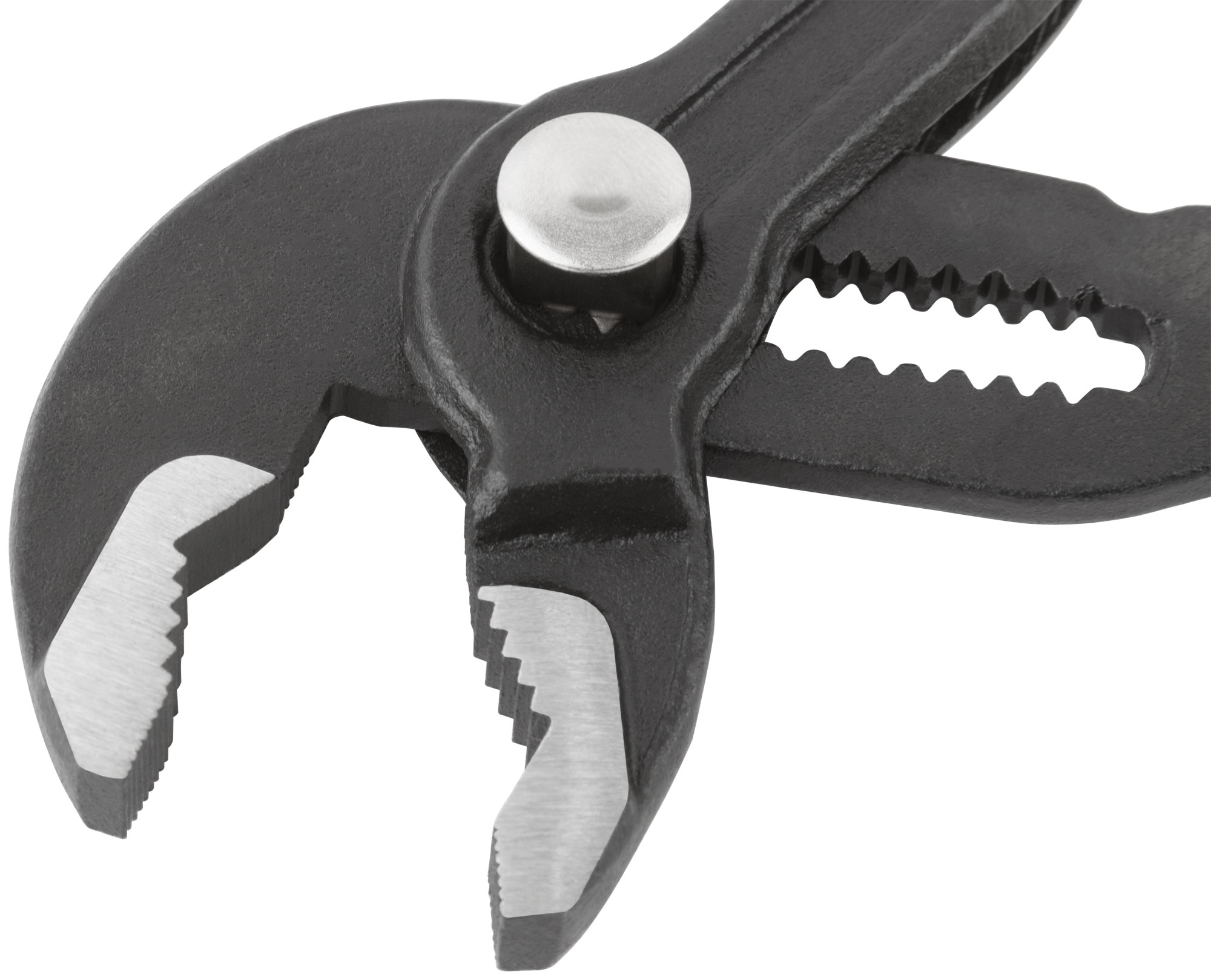 Быстрая регулировка ширины раскрытия губок достигается благодаря кнопочному фиксатору, что экономит время и усилия при работе. Такой инструмент особенно ценится профессионалами за свою функциональность и удобство.