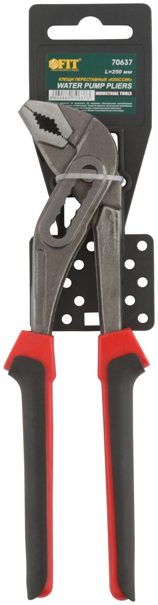 Клещи переставные FIT "Классик" тип D4 длиной 250 мм — незаменимый инструмент для мастеров и прорабов, когда требуется надежный захват труб или других круглых деталей. Благодаря своей конструкции, они позволяют быстро и безопасно зафиксировать объект, что особенно важно в условиях монтажных и ремонтных работ.
