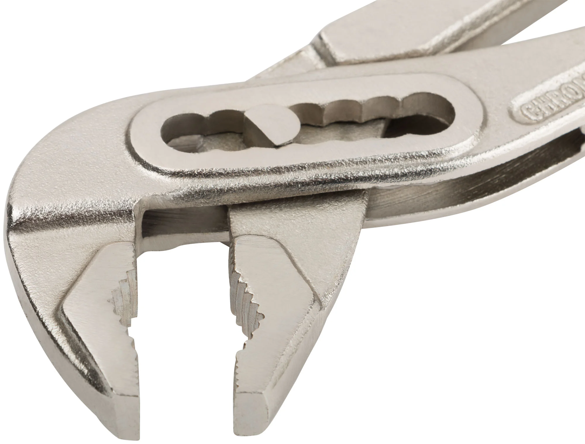 Эти переставные клещи идеально подходят для работ с трубами и крепежами в сантехнических и монтажных проектах. С их помощью можно без труда зафиксировать детали диаметром до 60 мм, обеспечивая надёжное удержание.