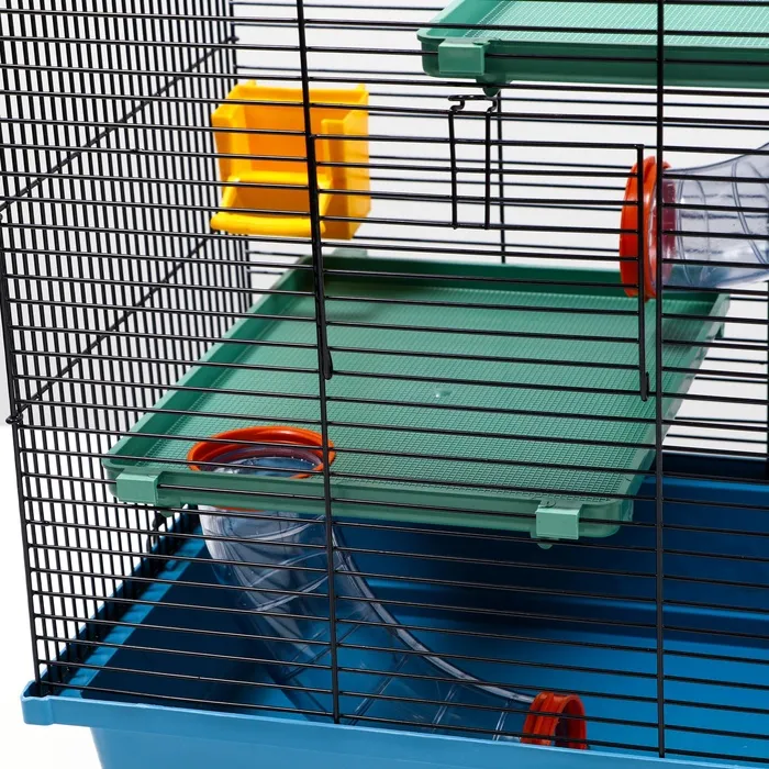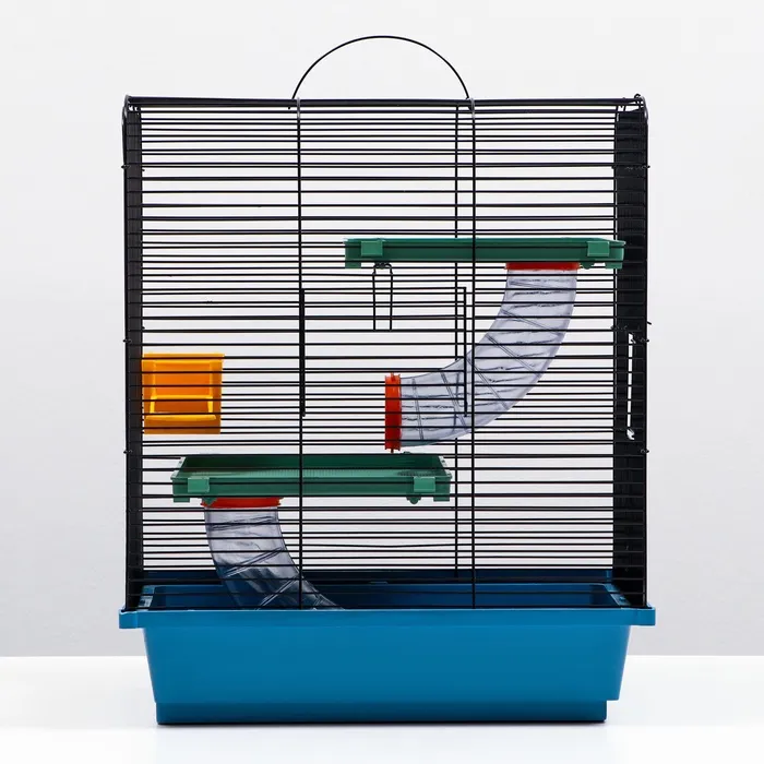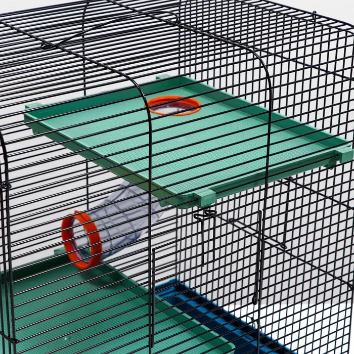 Клетка прямоугольной формы с горизонтальными прутьями – удобный и функциональный дом для любого грызуна: он занимает совсем немного места и отлично подходит для мелких домашних животных вроде крыс, мышей и хомяков.