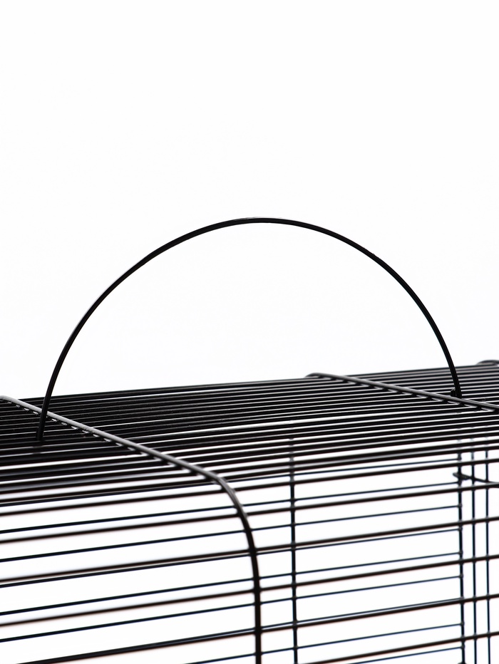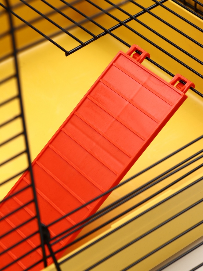 - Безопасная конструкция: Прутья расположены на расстоянии 9 мм — достаточно плотно, чтобы мелкие грызуны не проскользнули наружу, но с хорошей вентиляцией. Основание из прочного пластика легко моется и не пропускает подстилку.