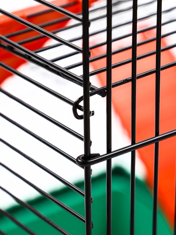 - Безопасность и гигиена: Расстояние между прутьями — 9 мм, что исключает побег даже самых маленьких обитателей. Пластиковое основание легко моется, а металлические стенки обеспечивают вентиляцию и обзор.