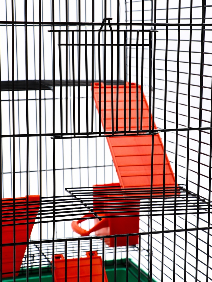 - Компактные габариты — 29×25×40 см: Несмотря на три этажа, клетка занимает мало места на столе или тумбе. Высота 40 см даёт объём, не увеличивая площадь основания — идеально для городских квартир.