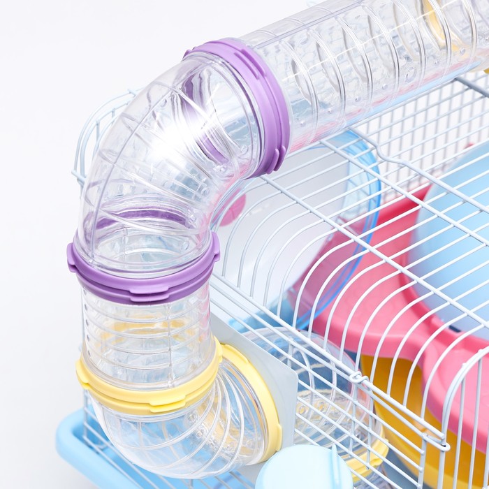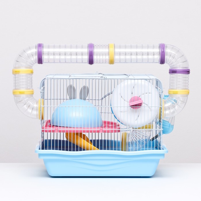 Клетка для грызунов «Пижон», 37×27×30 см, укомплектованная, с туннелем, пластик, металл, синяя — Характеристики