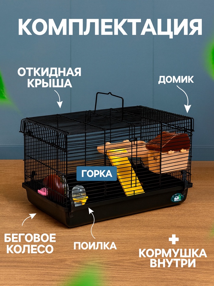 Клетка для грызунов «Пижон», с наполнением 47×30×27 см, чёрная — Характеристики
