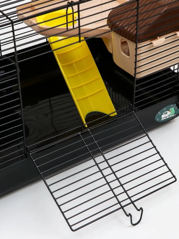 Яркая и просторная клетка с прочным металлическим каркасом - то, что нужно любому грызуну. Она не занимает много места и отлично подходит для мелких домашних животных вроде крыс, мышей и хомяков.