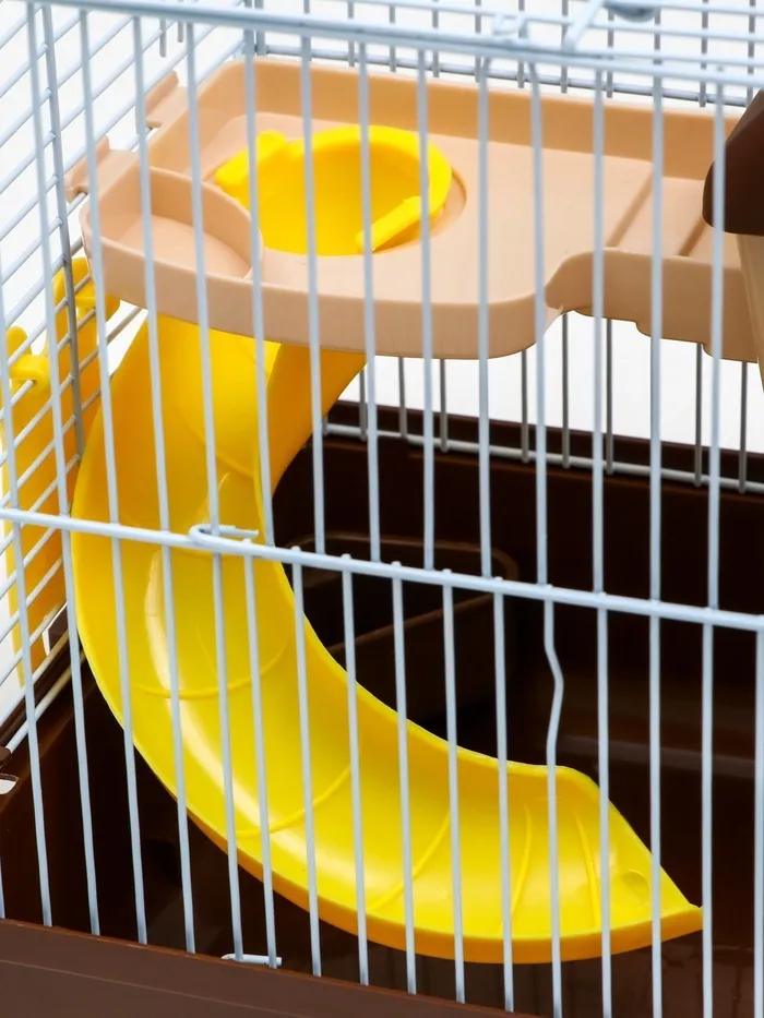 Яркая и просторная клетка с прочным металлическим каркасом - то, что нужно любому грызуну. Она не занимает много места и отлично подходит для мелких домашних животных вроде крыс, мышей и хомяков.