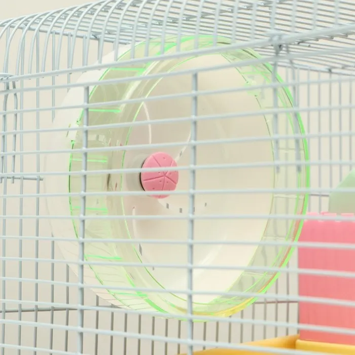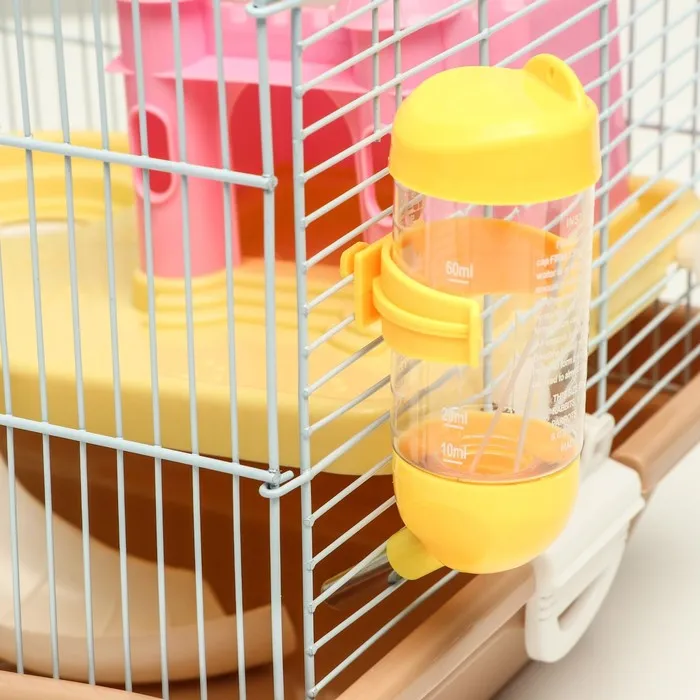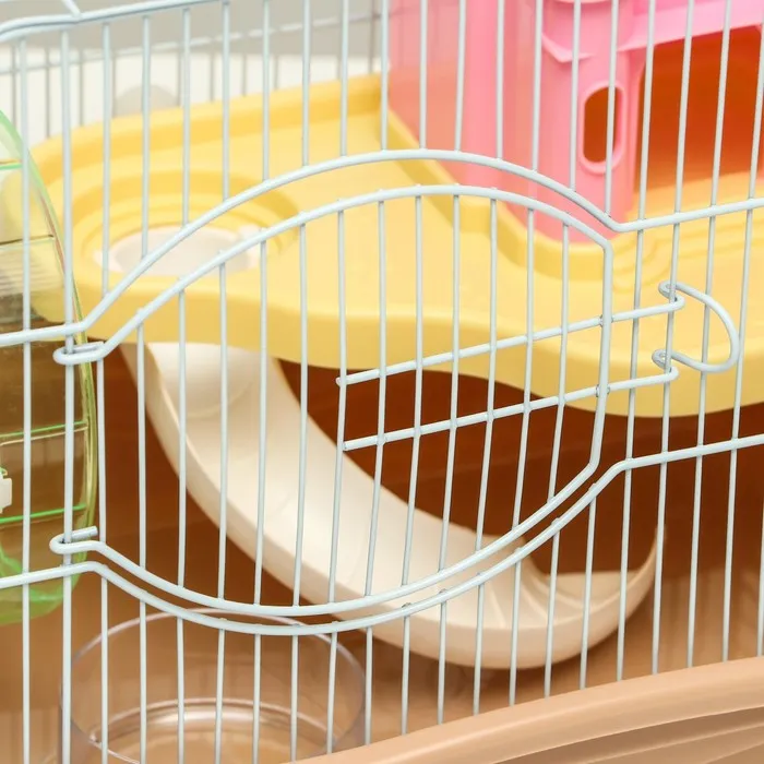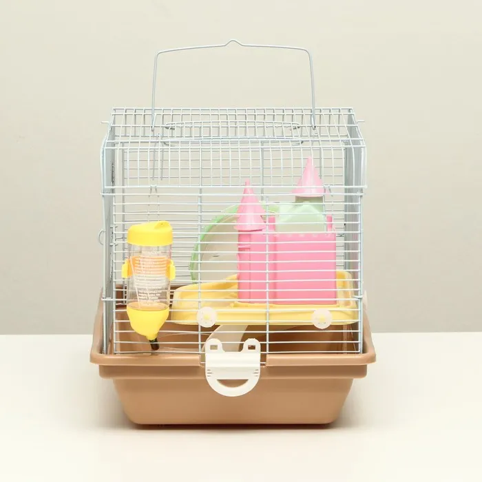 Наша компактная клетка для грызунов - это идеальное жилье для вашего маленького питомца. Модель укомплектована уютным домиком, бесшумным беговым колесом на подшипнике, мисочкой кормушкой для еды и не протекающей автопоилкой. Это обеспечивает комфортное и уютное проживание для ваших животных. Две удобные дверцы с креплениями в решетках позволяют быстро и легко получить доступ ко всему содержимому клетки. Клетка отлично подойдет для дунганского хомяка, маленьких мышей и песчанок. Модель имеет интересный дизайн, который легко вписывается в любой интерьер. Конструкция выполнена из безопасных гипоаллергенных материалов. Компактная и легкая клетка удобна для хранения и переноски, позволяя разместить ее в любом удобном месте.