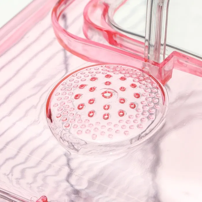 Для свободного доступа к питомцу и ежедневной уборки тут есть одна дверка, она расположена сверху. В случае необходимости поменять наполнитель или провести генеральную уборку клетка легко и просто разбирается - пластиковая основа присоединяется к верхней части с помощью двух защелок.