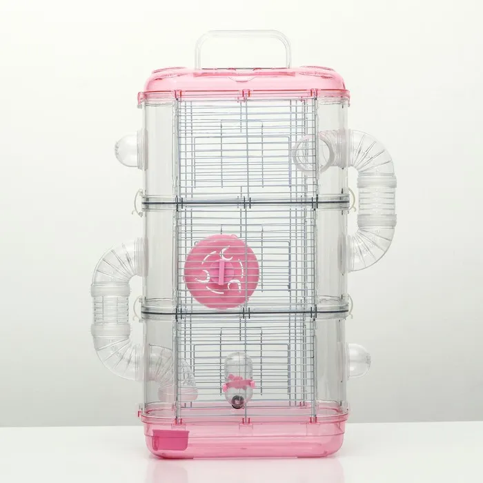 Надежная и практичная базовая клетка для вашего любимого питомца! Дизайн и наполнение созданы с учетом особенности жизни и интересов мелких грызунов. Трёхэтажная клетка предоставляет своему обитателю достаточно места для активного времяпрепровождения и интересного досуга.