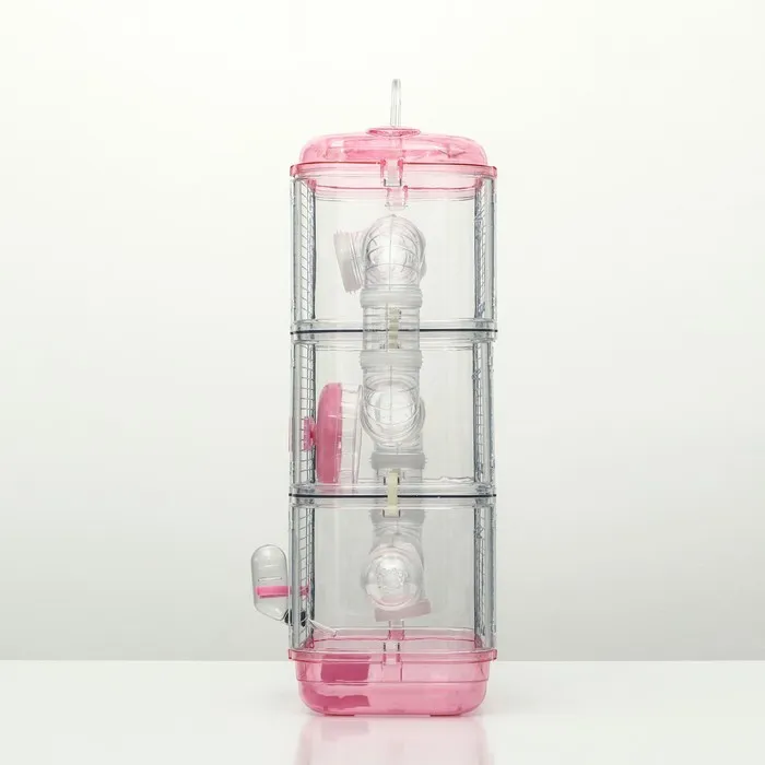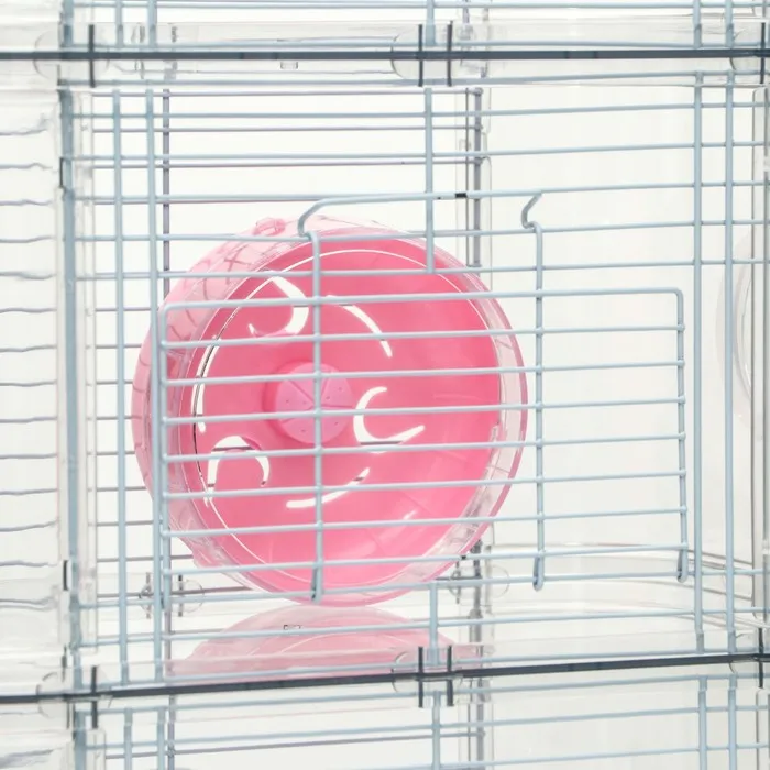 Система тоннелей, выходящая за пределы клетки, приведет в восторг любого хомячка, ведь узкий круглый коридор напоминает нору в земле, которые обычно они роют в дикой природе. Беговое колесо, которое крепится на прутья, является самой любимой игрушкой всех пушистиков, оно необходимо для тренировки тела и траты избыточной энергии.
