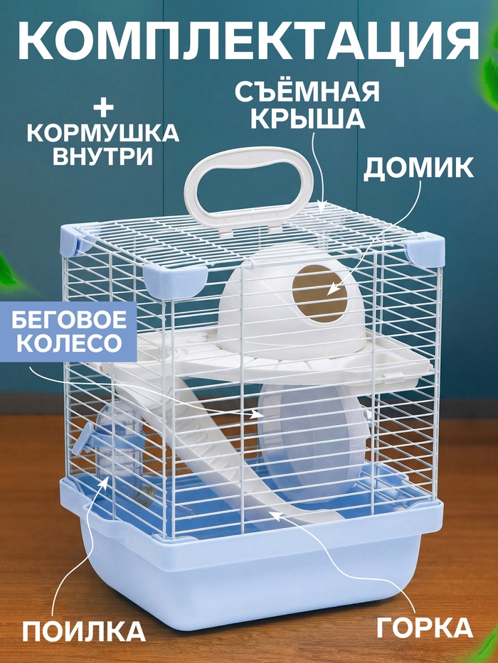 Клетка для грызунов укомплектованная, 23×19×28 см, голубая — Характеристики