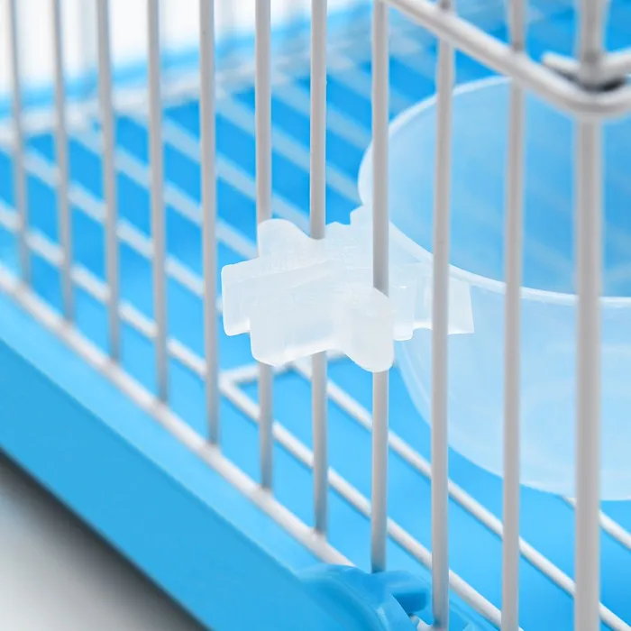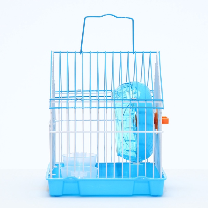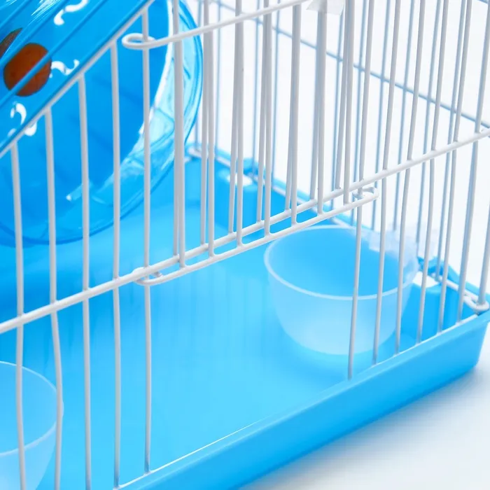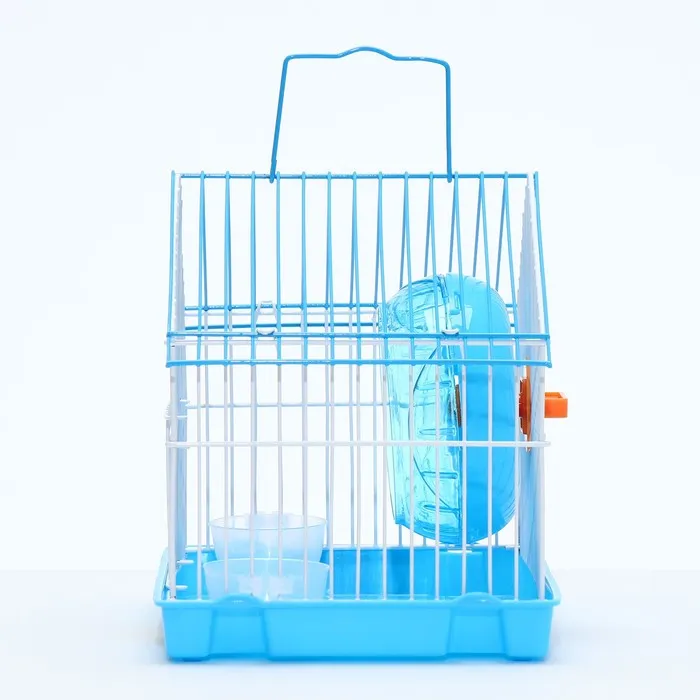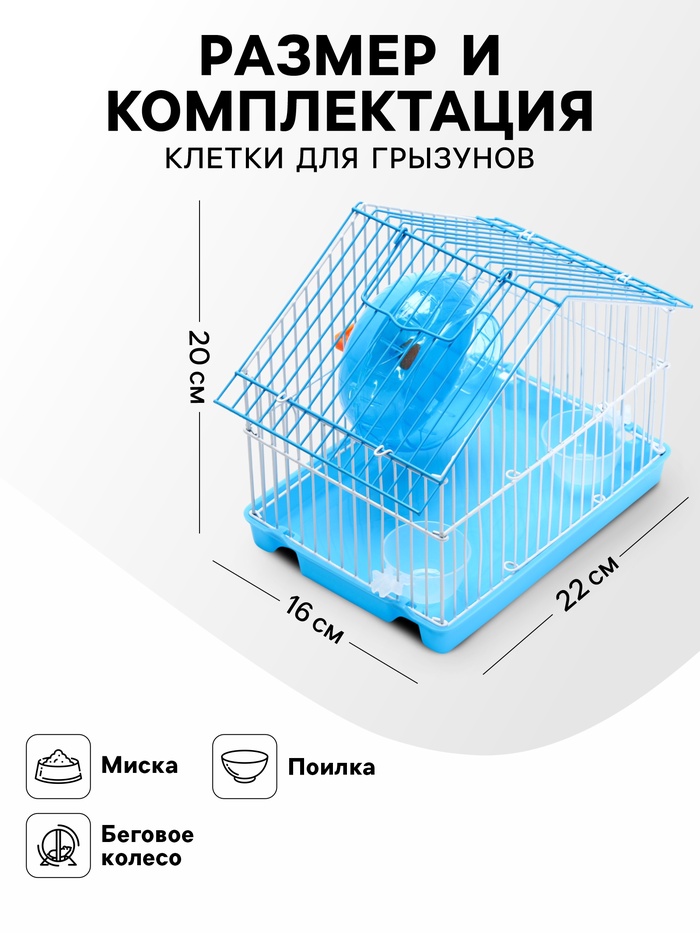 В комплекте вы найдёте всё необходимое для ухода за вашим питомцем: кормушку, поилку и беговое колесо. Клетка выполнена из прочных материалов — металла и пластика, которые гарантируют её долговечность и безопасность использования.