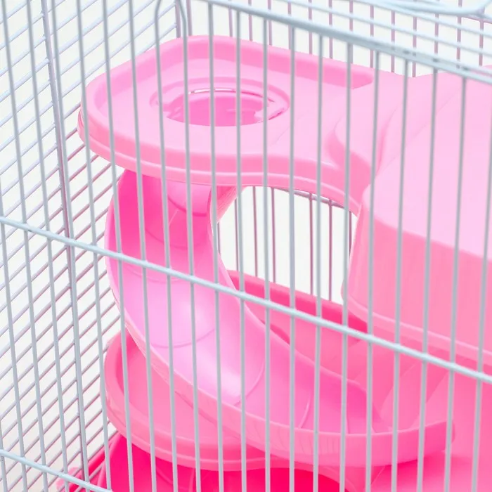 Яркая и просторная клетка с прочным металлическим каркасом - то, что нужно любому грызуну. Она не занимает много места и отлично подходит для мелких домашних животных вроде крыс, мышей и хомяков.