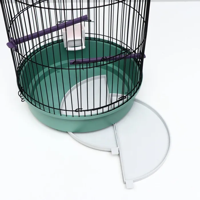 Клетка также оборудована специальным поддоном, облегчающим процесс уборки, а удобная ручка максимально упрощает транспортировку изделия.