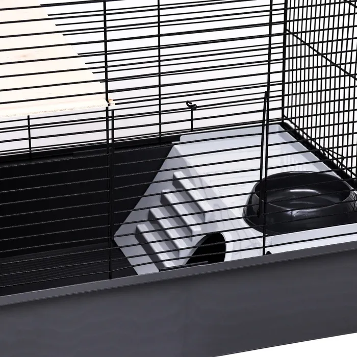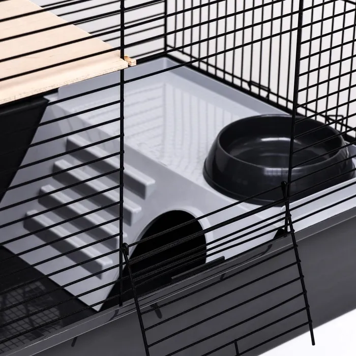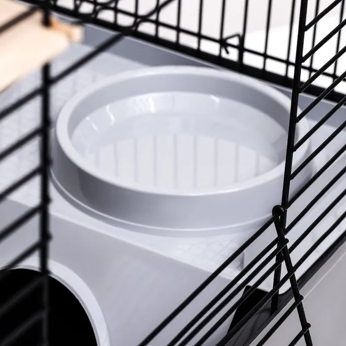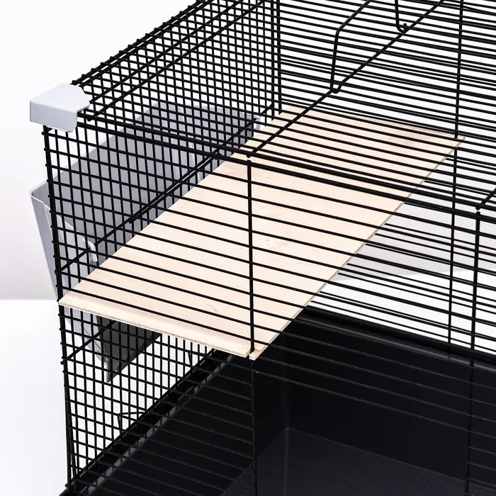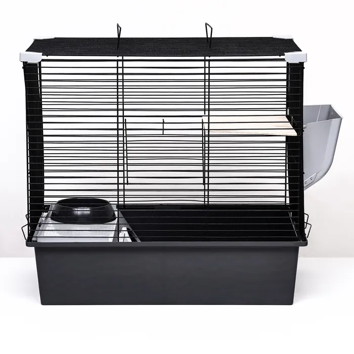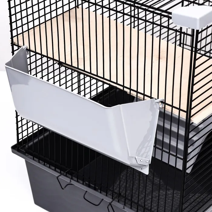 Клетка имеет два этажа. Это позволяет вашему питомцу свободно перемещаться по клетке и заниматься своими любимыми занятиями. Каждый этаж имеет отдельную дверцу, что облегчает уход за животным и чистку клетки.