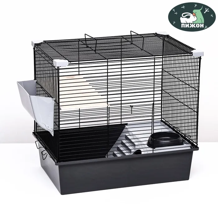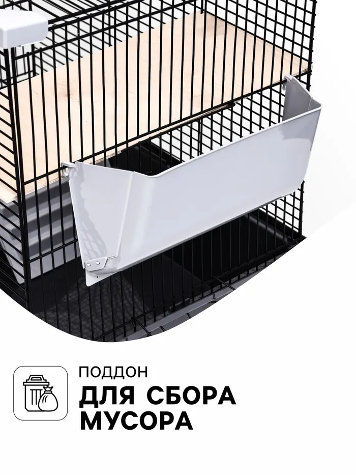 Клетка также оснащена специальными поддонами для сбора мусора и удобной системой крепления для кормушек и поилок.