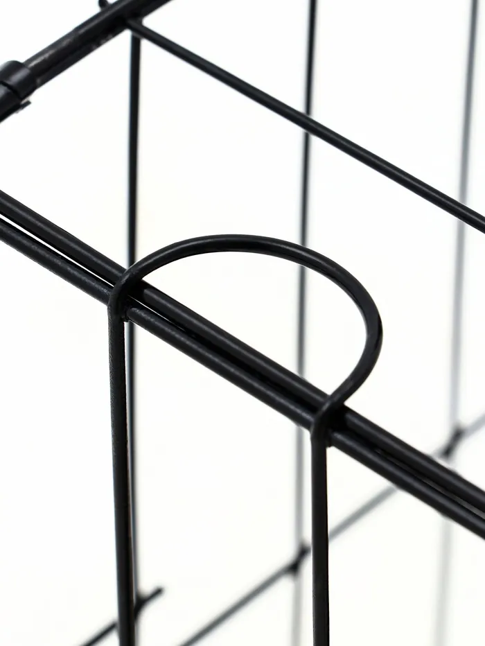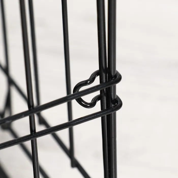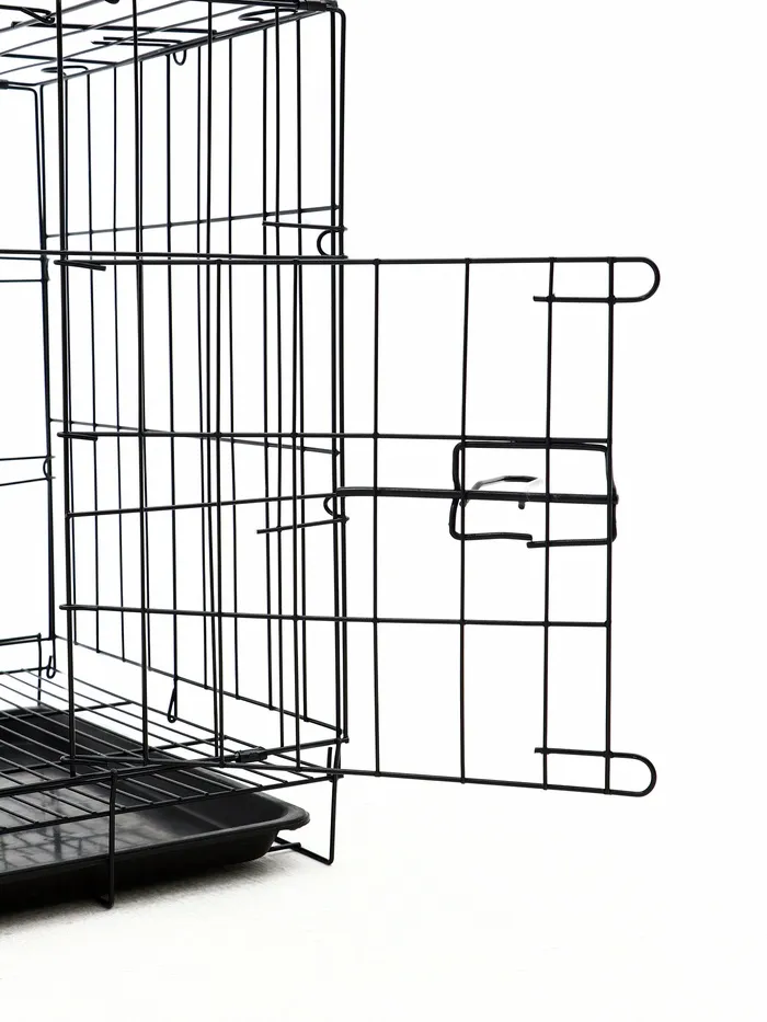 Клетка сочетает в себе функциональность и эстетику. Её размеры подходят для большинства средних пород, а чёрный цвет делает её универсальной для любого интерьера. Прочность и удобство использования делают её надежным выбором для заботливых хозяев.