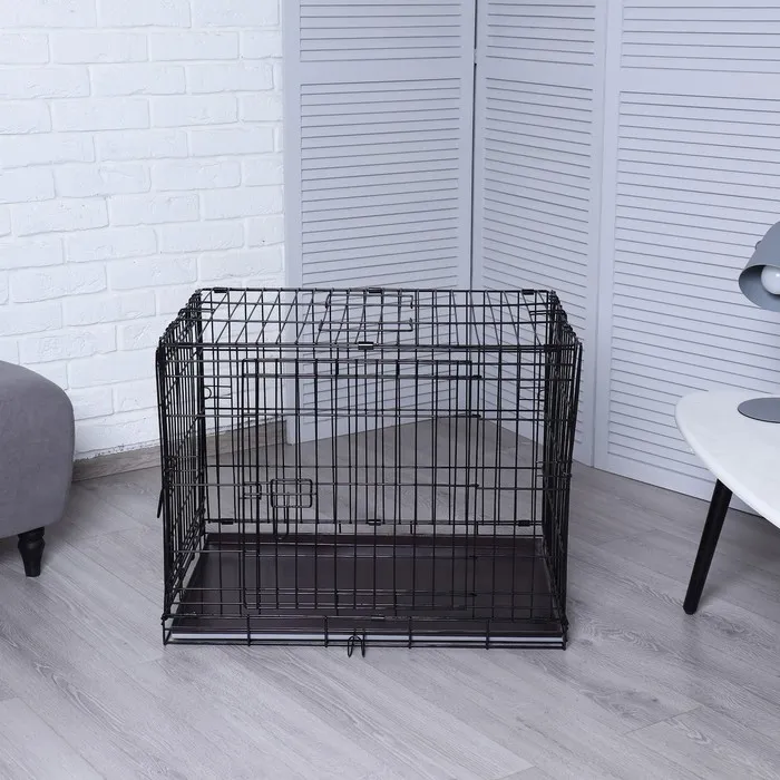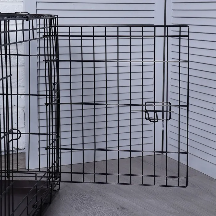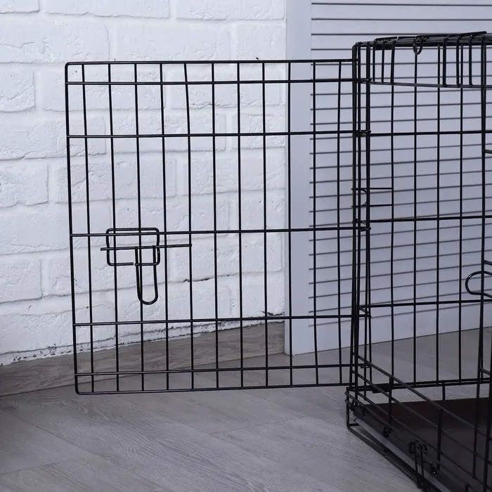 Она имеет удобную дверцу, которая позволяет легко и быстро помещать и вынимать собаку из клетки.