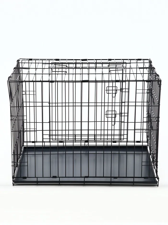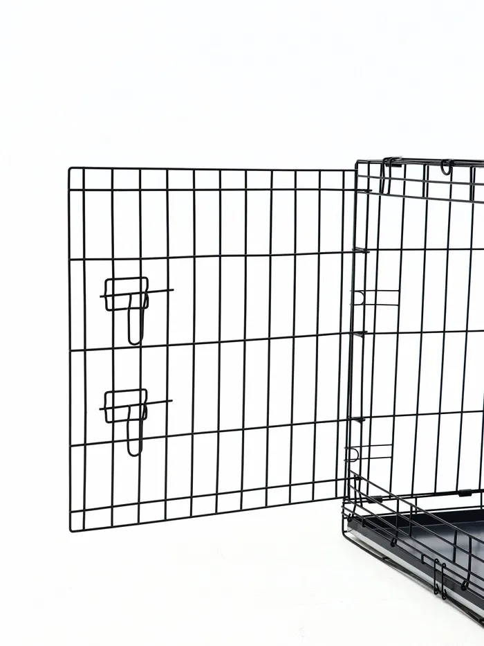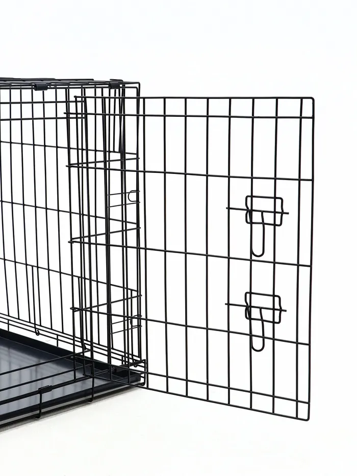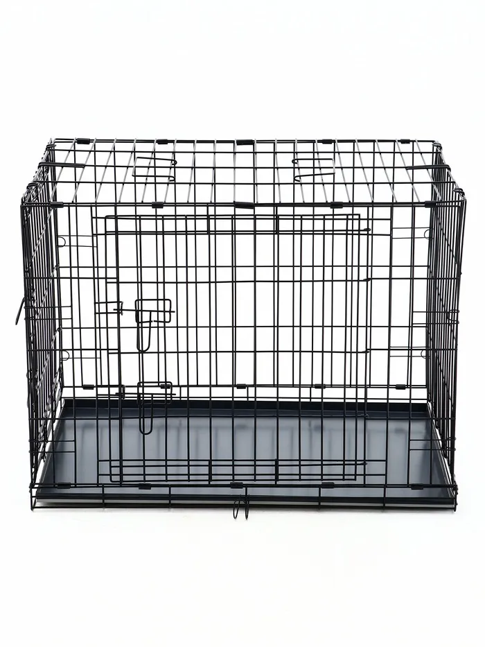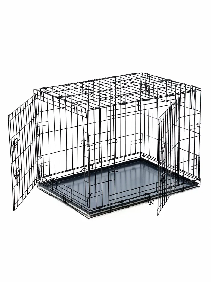 Эта клетка сочетает в себе функциональность и удобство. Прочная металлическая конструкция выдерживает активность крупных собак, а складной механизм делает её универсальной для дома и поездок. Просторное внутреннее пространство обеспечивает комфорт, а поддон упрощает уход за клеткой.