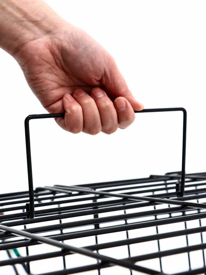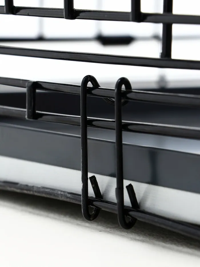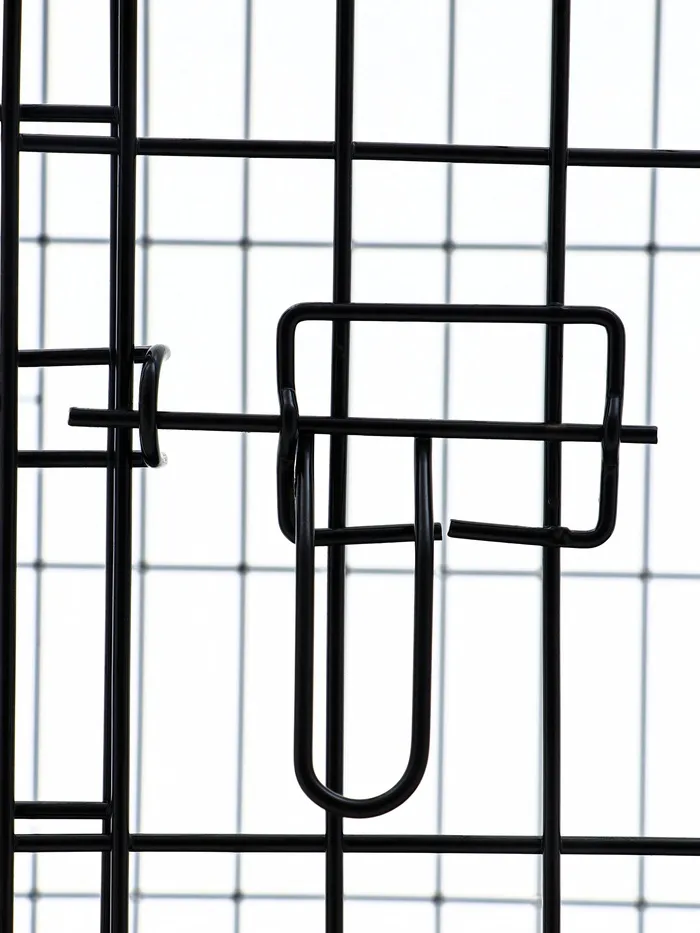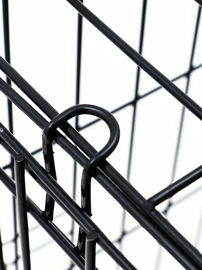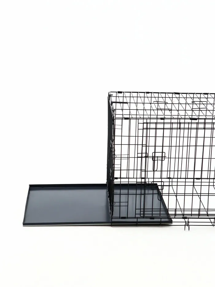 Эта клетка сочетает в себе функциональность и удобство. Прочная металлическая конструкция выдерживает активность крупных собак, а складной механизм делает её универсальной для дома и поездок. Просторное внутреннее пространство обеспечивает комфорт, а поддон упрощает уход за клеткой.