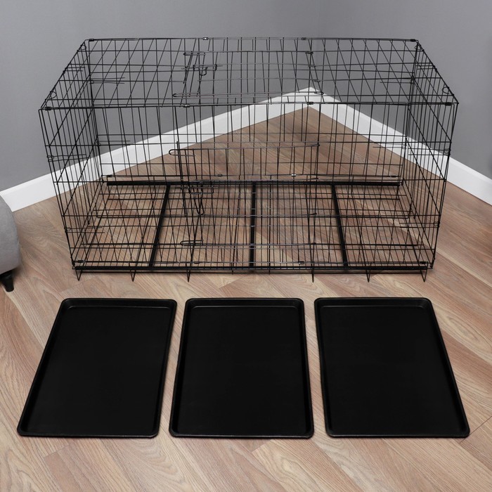 Клетка для собак с люком в чёрном цвете - это идеальное решение для комфортного и стильного пребывания вашего питомца! Клетка подойдет кошкам и собакам мелких, средних и крупных пород.Вместительная клетка предоставляет отличное пространство для вашего питомца, где он может отдохнуть и чувствовать себя защищенным. Клетка изготовлена из прочного и безопасного металла, обеспечивающего надежную защиту и удобство. Она имеет прочное основание и прочные стенки, которые защищают вашего питомца от внешних факторов и обеспечивают безопасность. Люк в клетке обладает простым и практичным замком, который обеспечивает легкий доступ для вашего питомца. Он легко открывается и закрывается, что делает процесс посадки и высадки собаки максимально удобным и безопасным. Клетка имеет пластиковое секционное дно, которое легко извлекается, что упрощает процесс уборки вольера. Очаровательный чёрный цвет клетки придает ей особую привлекательность. Она станет не только функциональным приспособлением для вашего питомца, но и стильным дополнением для вашего дома или сада. Не упустите возможность предоставить вашей собаке комфортное и красивое место отдыха!