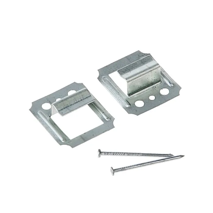 Металлическая деталь имеет отверстия для гвоздей или скоб, а также язычок, удерживающий облицовочный материал за паз.