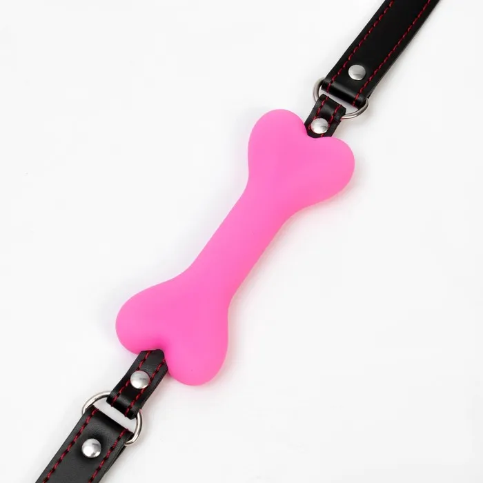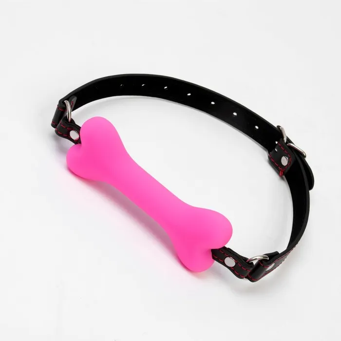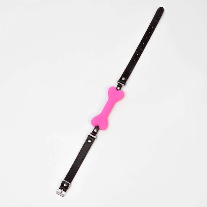 Кляп БДСМ «Косточка» , 15×2.5 см, силикон, кожа, розовая — Характеристики