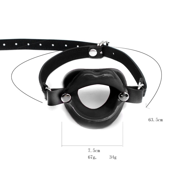 Кляп-рамка БДСМ в форме губ, ПВХ, экокожа, черный 5×4.5 см — Характеристики