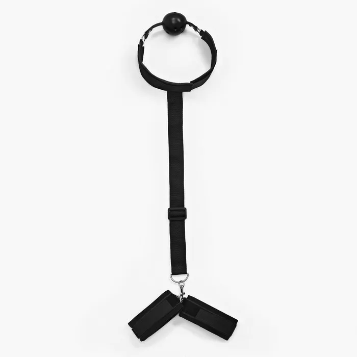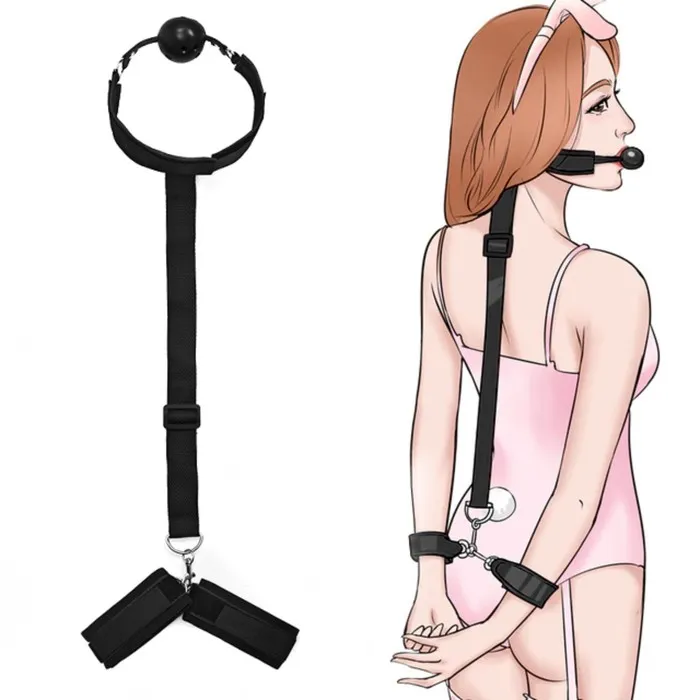 Фиксатор для рук с кляпом выполнен из нейлонового стропа и abs пластика. Все ремни имеют систему регулировки. Кляп выполнен из abs пластика. Шарик имеет оптимальный размер, хорошо помещается в рот, а ремешок имеет систему регулировки, так что он подойдет и для нее и для него. Наручники крепятся при помощи карабина.