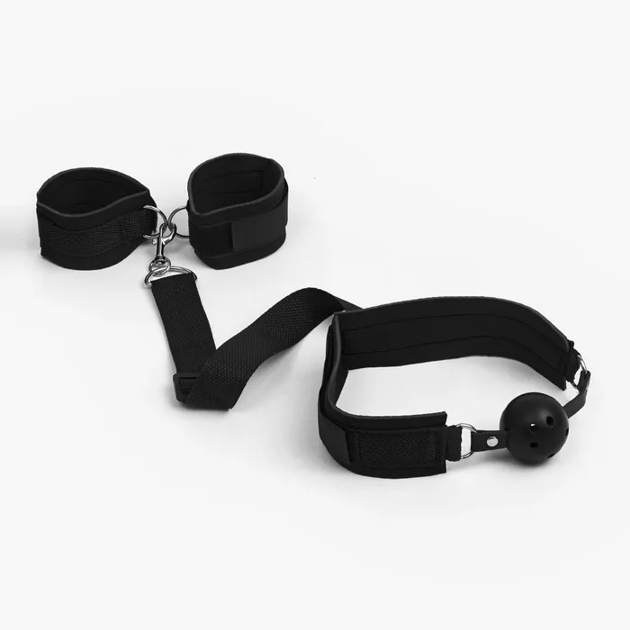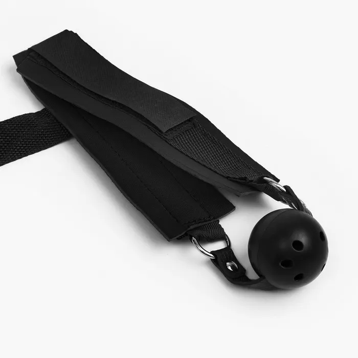 Кляп с наручниками регулируемые ремни, неопрен, стропа, PVC, черный — Характеристики