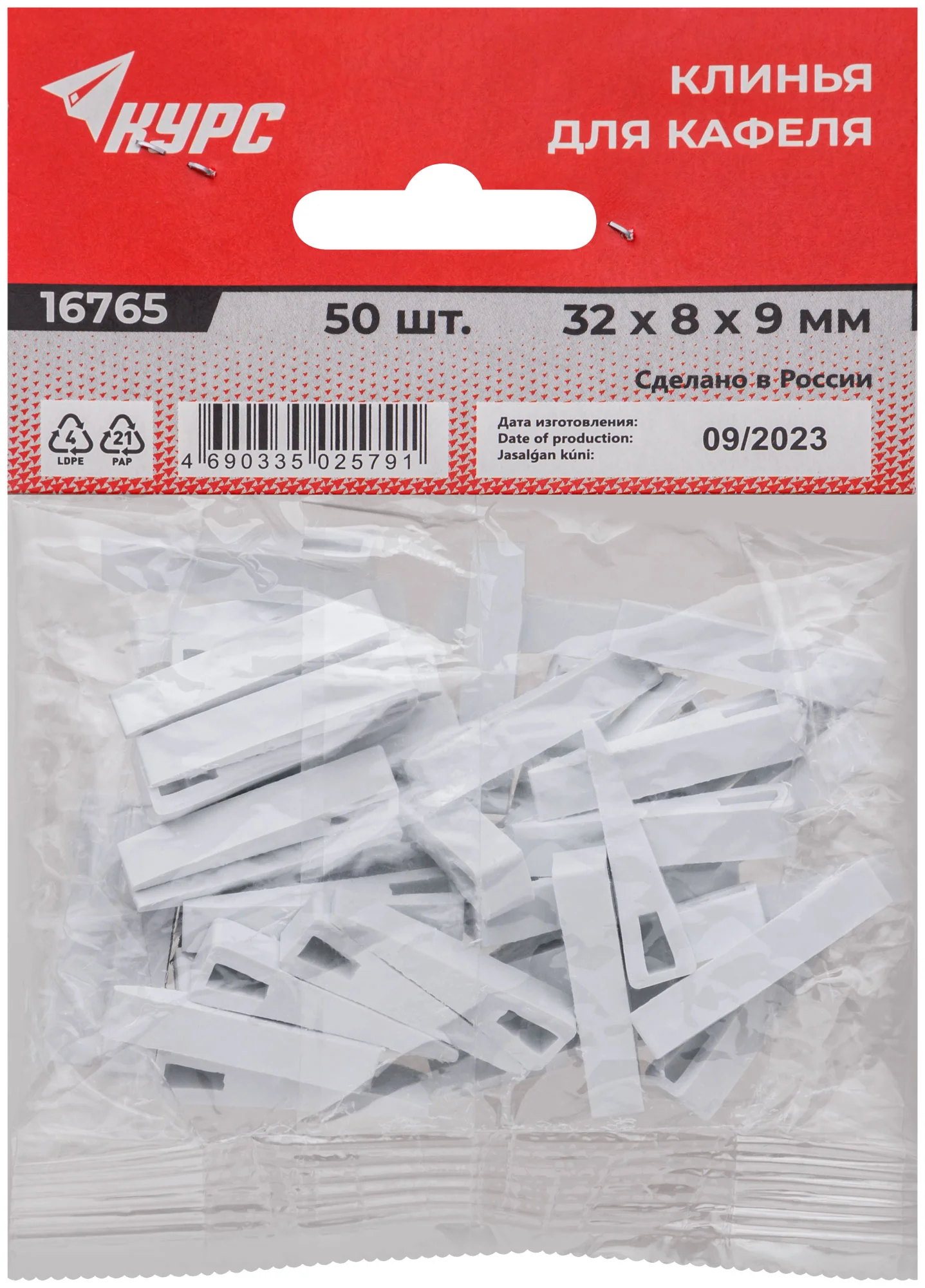 Эти клинья изготовлены из прочного пластика, что делает их долговечными и устойчивыми к нагрузкам. Упаковка содержит 50 клиньев, что позволяет работать с большими площадями без необходимости частой дозакупки.