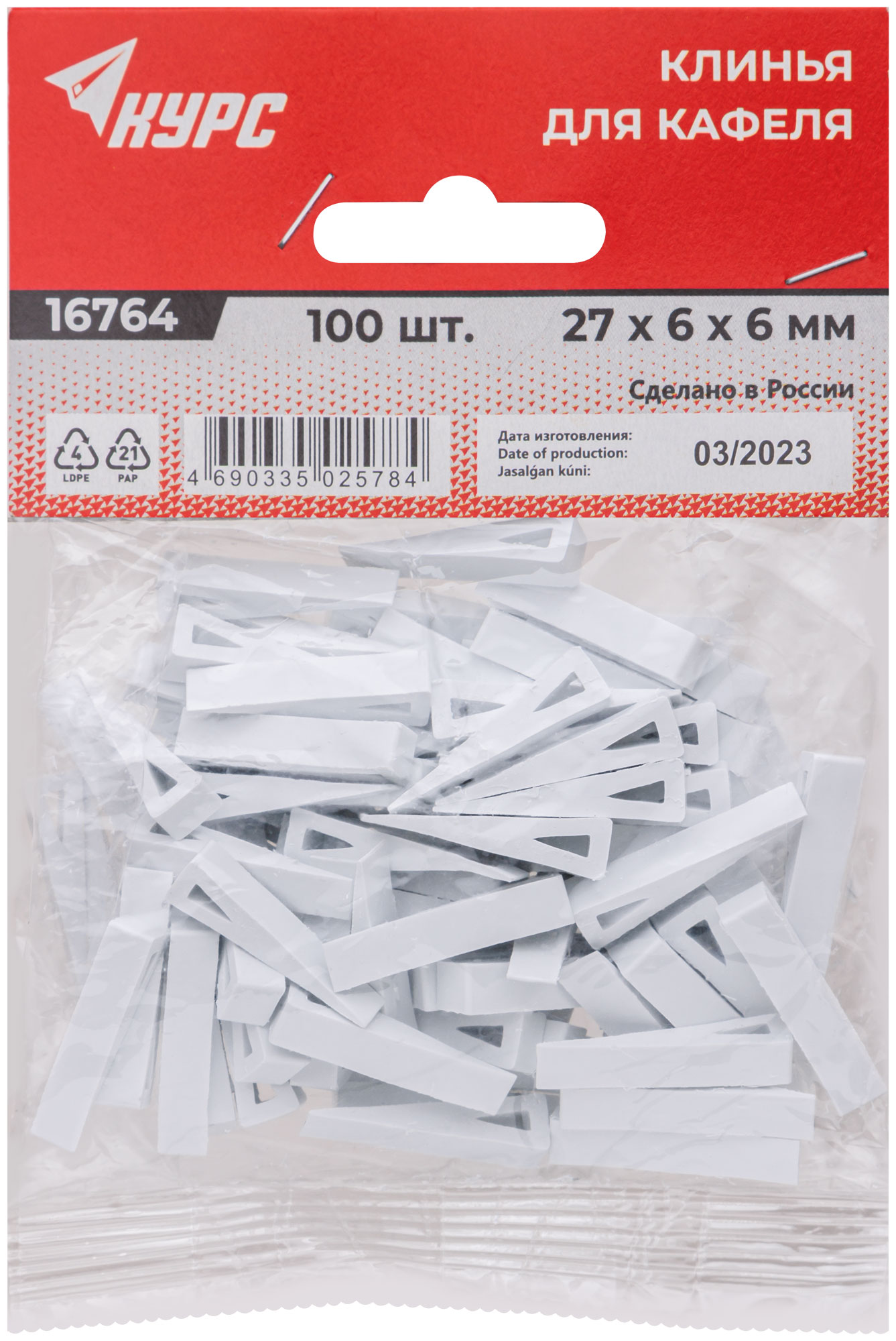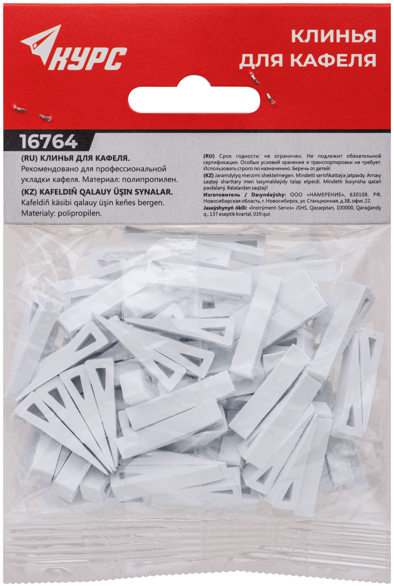 Клинья для кафеля КУРС — незаменимый инструмент при укладке плитки в ванных комнатах, кухнях или любых других помещениях, требующих точного выравнивания. Они помогут вам равномерно укладывать плитку, обеспечивая идеальный конечный результат.