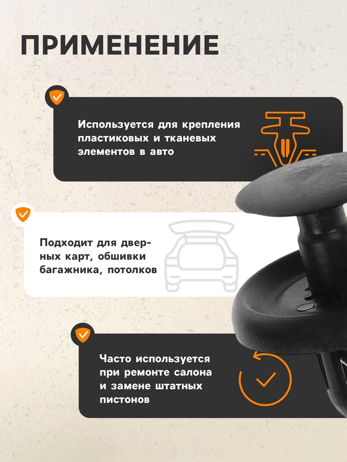Реальность российских дорог такова, что пластиковые детали достаточно часто ломаются и нуждаются в замене. Кроме того, подбор клипс важен при решении вопросов, связанных с шумоизоляцией салона автомобиля. В этом случае такие детали чуть ли не более важный инструмент, чем сам изоляционный материал. Потому что именно от них зависит, как будет держаться изоляция и скрывающий её пластик.