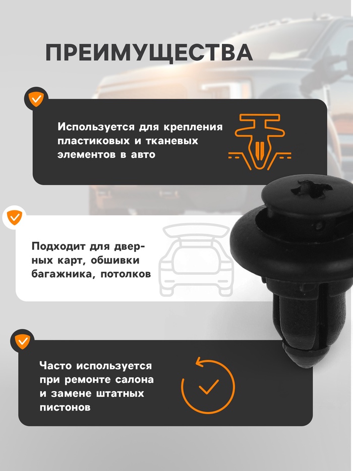 Реальность российских дорог такова, что пластиковые детали достаточно часто ломаются и нуждаются в замене. Кроме того, подбор клипс важен при решении вопросов, связанных с шумоизоляцией салона автомобиля. В этом случае такие детали чуть ли не более важный инструмент, чем сам изоляционный материал. Потому что именно от них зависит, как будет держаться изоляция и скрывающий её пластик.