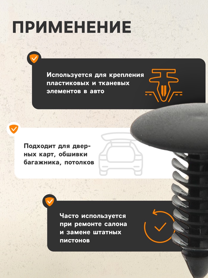 Реальность российских дорог такова, что пластиковые детали достаточно часто ломаются и нуждаются в замене. Кроме того, подбор клипс важен при решении вопросов, связанных с шумоизоляцией салона автомобиля. В этом случае такие детали чуть ли не более важный инструмент, чем сам изоляционный материал. Потому что именно от них зависит, как будет держаться изоляция и скрывающий её пластик.