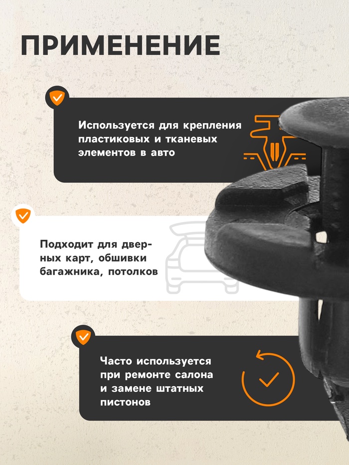 Реальность российских дорог такова, что пластиковые детали достаточно часто ломаются и нуждаются в замене. Кроме того, подбор клипс важен при решении вопросов, связанных с шумоизоляцией салона автомобиля. В этом случае такие детали чуть ли не более важный инструмент, чем сам изоляционный материал. Потому что именно от них зависит, как будет держаться изоляция и скрывающий её пластик.