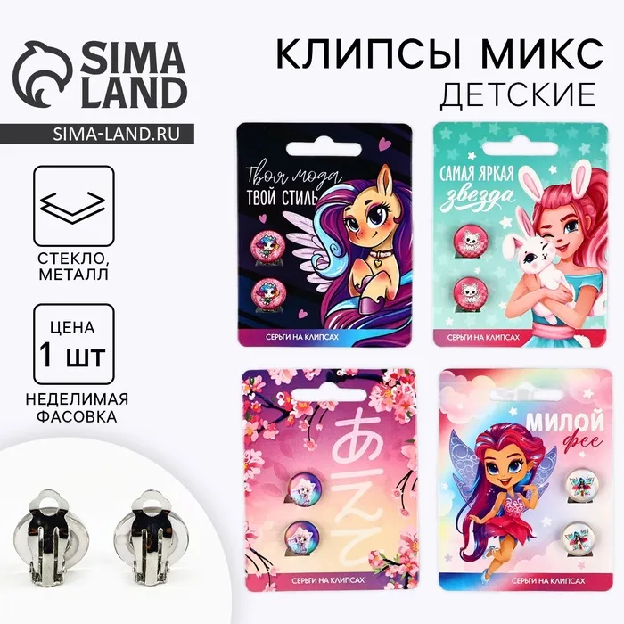 Клипсы детские, 1×1.4×1.8 см, МИКС — Характеристики