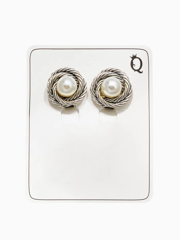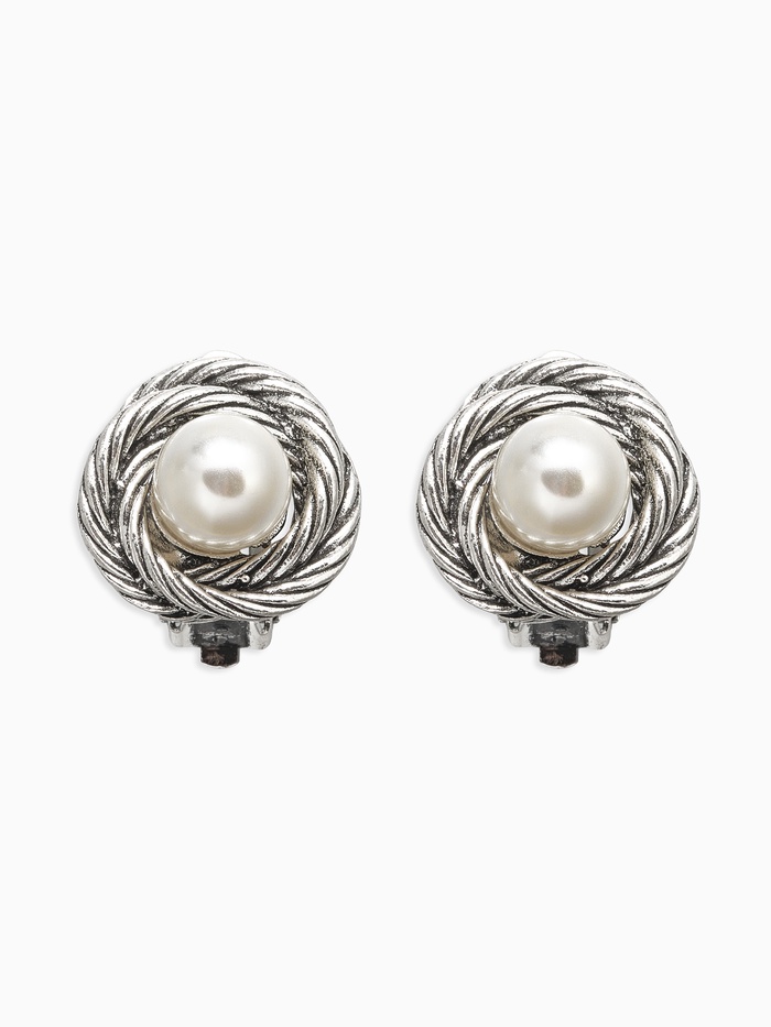 Клипсы для ушей QF «Грейс», закругление с бусиной, цвет белый в чернёном серебре — Характеристики