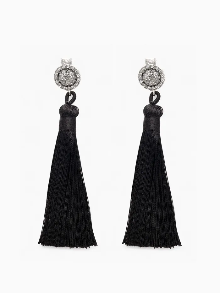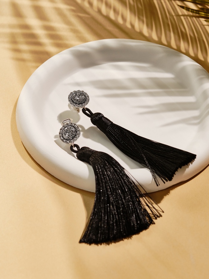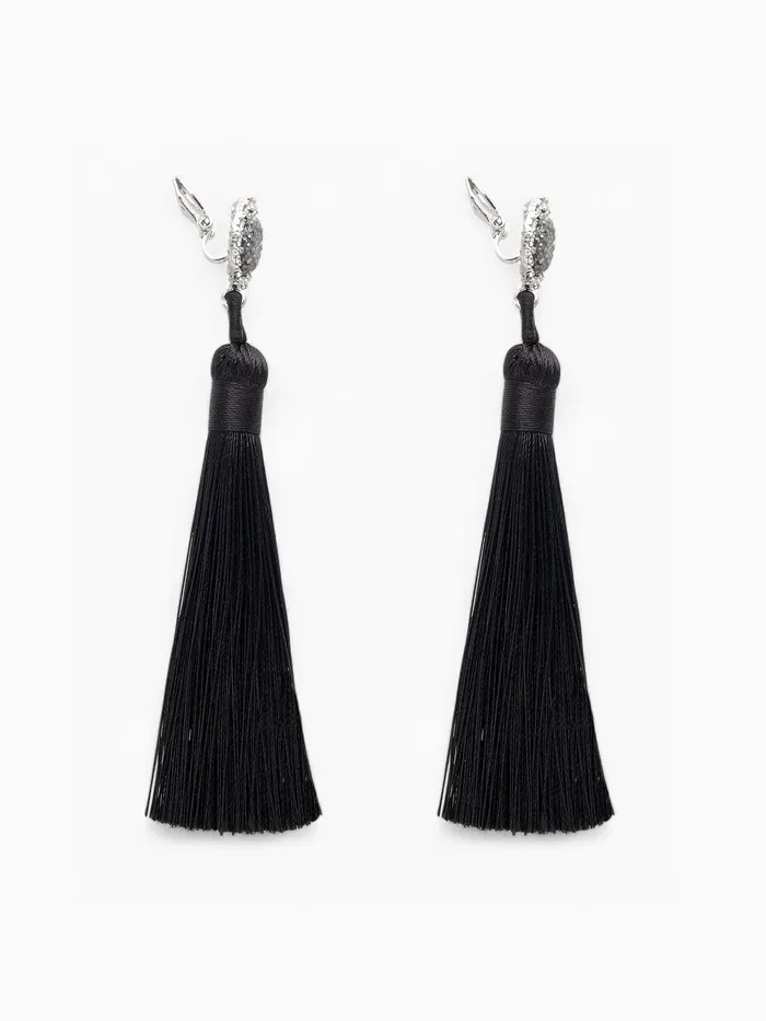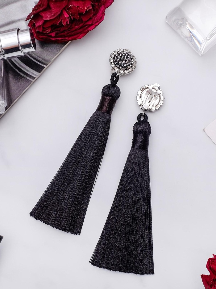 Элегантные клипсы с кистями в черном цвете — это идеальный аксессуар для женщин, которые хотят добавить изюминку в свой образ. С длиной 9,6 см и стильным дизайном, они прекрасно подойдут как для повседневной носки, так и для особых случаев, таких как Новый год, 8 Марта или выпускной.