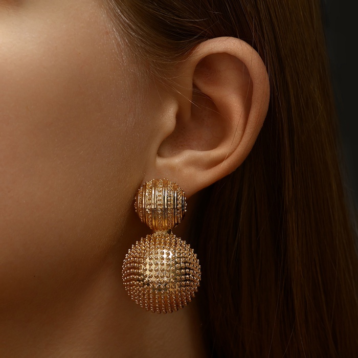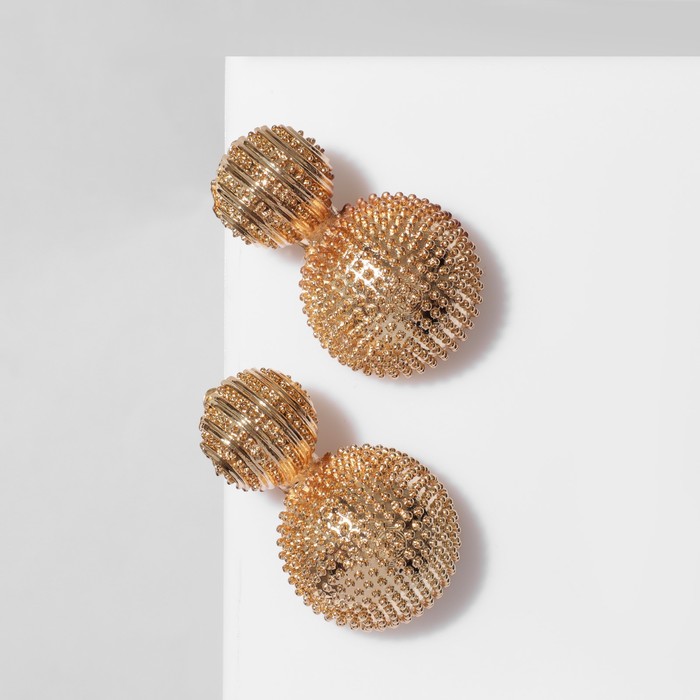 Клипсы для ушей QF «Рельеф», двойной шар, цвет золото — Характеристики