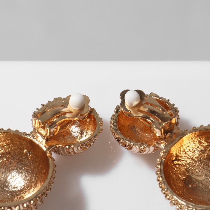 Клипсы для ушей QF «Рельеф», двойной шар, цвет золото