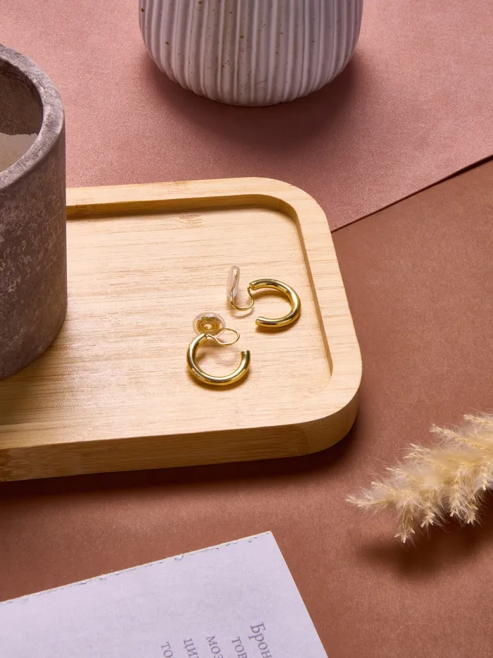 Погрузитесь в мир утончённой элегантности с клипсами в форме кольца, которые станут идеальным акцентом для вашего образа. Эти золотистые серьги, выполненные из качественной меди, идеально подходят для женщин, стремящихся подчеркнуть свою индивидуальность и стиль.