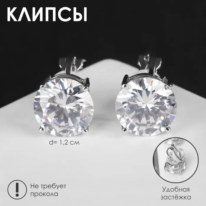 Клипсы для ушей QF «Вечеринка», крупные кристаллы, белая в серебре — Характеристики